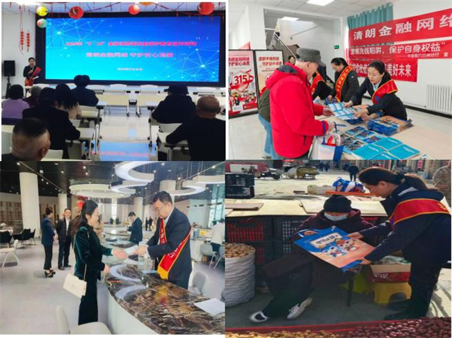 3月12日当天,一是该行小企业经营中心、新城区支行等3个党支部的“张富清金融服务队”,与监管机构、银行业协会、中行巴州分行、农行铁门关兵团分行的工作人员共同走进库尔勒建设街道上恰其社区,为社区居民、集市商户开展金融宣教活动;二是该行开发区支行党支部组织“张富清党员突击队”走进库尔勒经济技术开发区管委会政务大厅,为前来办事的企事业单位人员、群众开展金融宣教活动。该行宣教人员通过悬挂横幅、摆放宣传展板、设立服务台、使用巴州银行业协会精心制作的APP课件集中专题宣讲、现场答疑、发放宣传资料等方式,重点围绕维护金融消费者合法权益、防诈反诈、防非打非、典型案例、防范金融网络风险等主题内容开展金融宣教活动,用通俗易懂的语言和生动的案例,把金融消保知识送到大家的身边,帮助社区居民、企事业单位人员、群众提升防范风险意识和自我保护能力。活动现场累计发放宣传资料100余份,接受群众咨询60余人次。