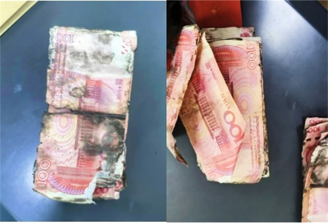 二、专业核验,细致操作挽回损失。该行工作人员严格按照中国人民银行对残缺污损人民币兑换的相关规定及要求,认真进行残损人民币的整理与核验工作,该行工作人员小心翼翼将粘连的残币逐一分离,仔细清理表面灰烬,全程小心操作避免造成二次损伤。经过2个多小时时间,该行工作人员完成了对残损人民币的逐张冠字号码、水印等关键信息辨认与核验,精准区分全额、半额兑换标准,认真完成每一张残币的鉴别、统计与分类。最终完成了兑换3万余元火烧残损人民币业务,帮助客户挽回了经济损失。