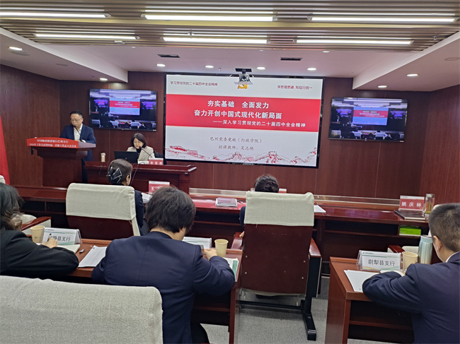 本次培训特邀巴州党委党校行政法学教研室主任、高级讲师吴志艳作专题辅导授课。吴志艳老师以《夯实基础 全面发力 奋力开创中国式现代化新局面——深入学习贯彻党的二十届四中全会精神》为主题,从全面把握“十五五”时期是基本实现社会主义现代化的关键时期、深刻理解“十五五”时期的总体要求、坚决贯彻“十五五”时期我国经济社会发展的重大任务、深刻把握“十五五”时期的根本政治保证四个方面,对党的二十届四中全会精神进行了全面系统、深入浅出的解读,授课内容理论扎实、重点突出、贴合实际,为参会人员精准学习、深刻领会全会精神提供了专业指导。