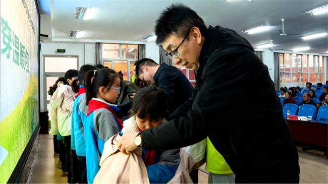 当参会领导与建行工作人员一同为学生代表试穿“爱心温暖包”时,崭新的衣物驱散了冬日的严寒,也照亮了孩子们眼中的光芒。轮台县第四小学学生奶皮斯·亚森捧着新鞋,满脸真挚地说:“谢谢叔叔阿姨送来的新衣服和鞋子,这个冬天不冷了。妈妈常说我们被社会关心着,我一定会好好读书,将来把这份爱心传下去。”孩子纯真的话语,正是对建行爱心举措最动人的回应。
