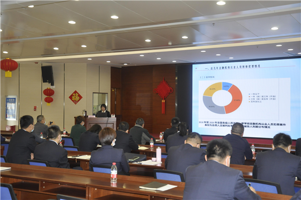 为进一步增强巴州金融从业人员法律风险防范意识,提高各级管理人员在业务操作过程中法律风险的控制能力,提升信贷业务管理水平,2021年10月22日上午,由巴音郭楞银保监分局主办、巴州银行业协会协办的辖内金融从业人员刑事风险与预防专题培训在库尔勒农商银行十六楼召开。银保监分局相关职能部门负责人、消费者权益保护中心人员、银行业协会秘书处人员、各金融机构负责人及其相关部门工作人员共60余人参加了此次专题培训活动。